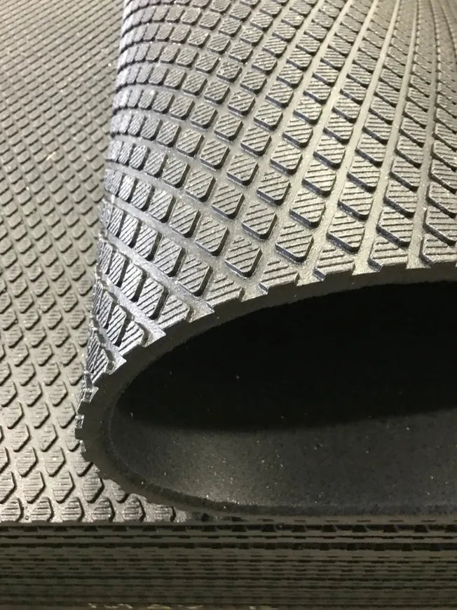Textured face for grip with grooved channels on underside for drainage and ventilation.