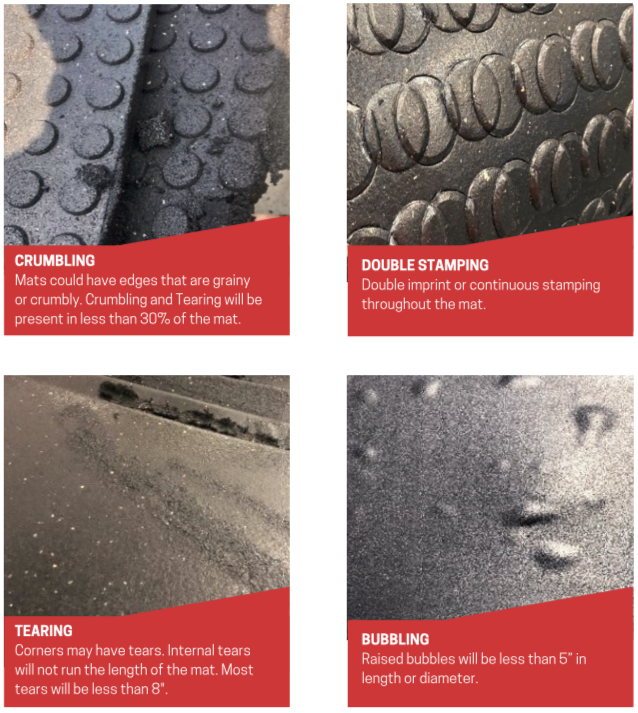 - These have blemishes, surface inconsistencies, size variances, small tears and or chunks missing. Please refer to the Second Grade Mat guide.