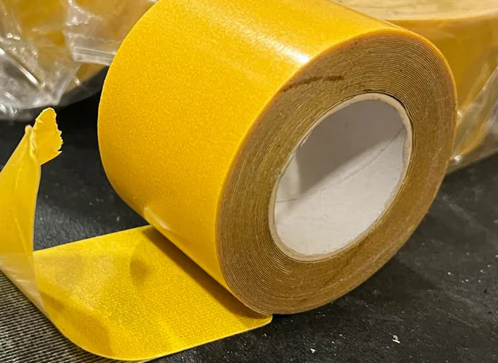 A quality double sided flooring tape with a fibrous inlay. 2" wide with 30 linear feet per roll.